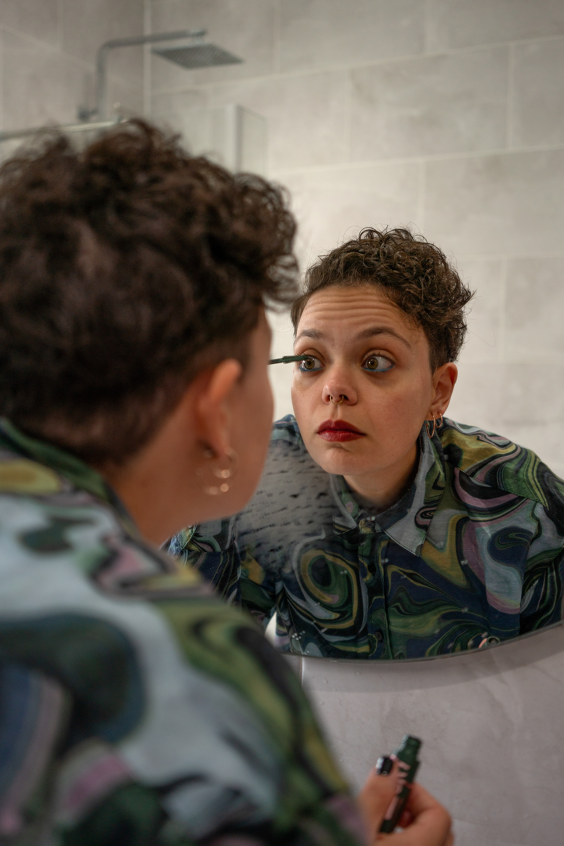 I feel my queer feminine self both when i dress in sparkling clothes and go out rough with no makeup on. Queerness gave me the means to express how i feel and think about myself by projecting it on me like a live canvas. I'm proud of the ever-changing self I'm becoming.''